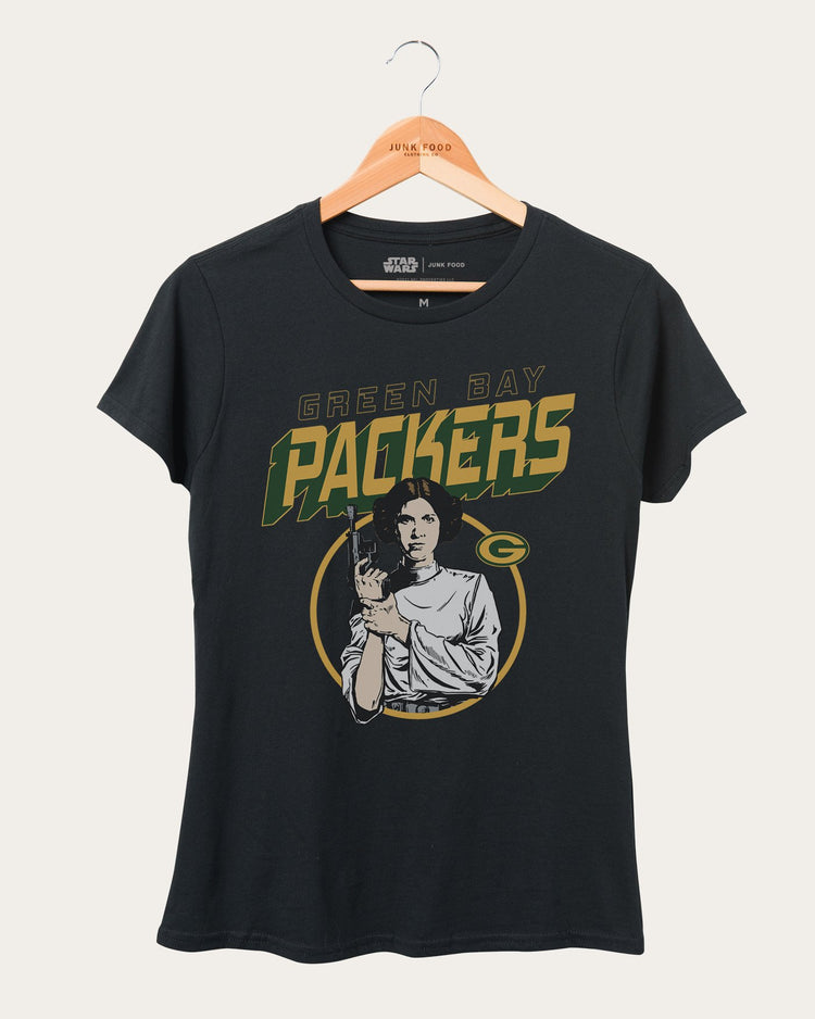 Save the galaxy in our Star Wars™ Princess Leia Women's Tee. Featuring a soft-hand screen print on the front and made of 100% cotton, this contoured, feminine fit tee is the perfect combination of pop culture and sports culture for fans of both. Go Packers!