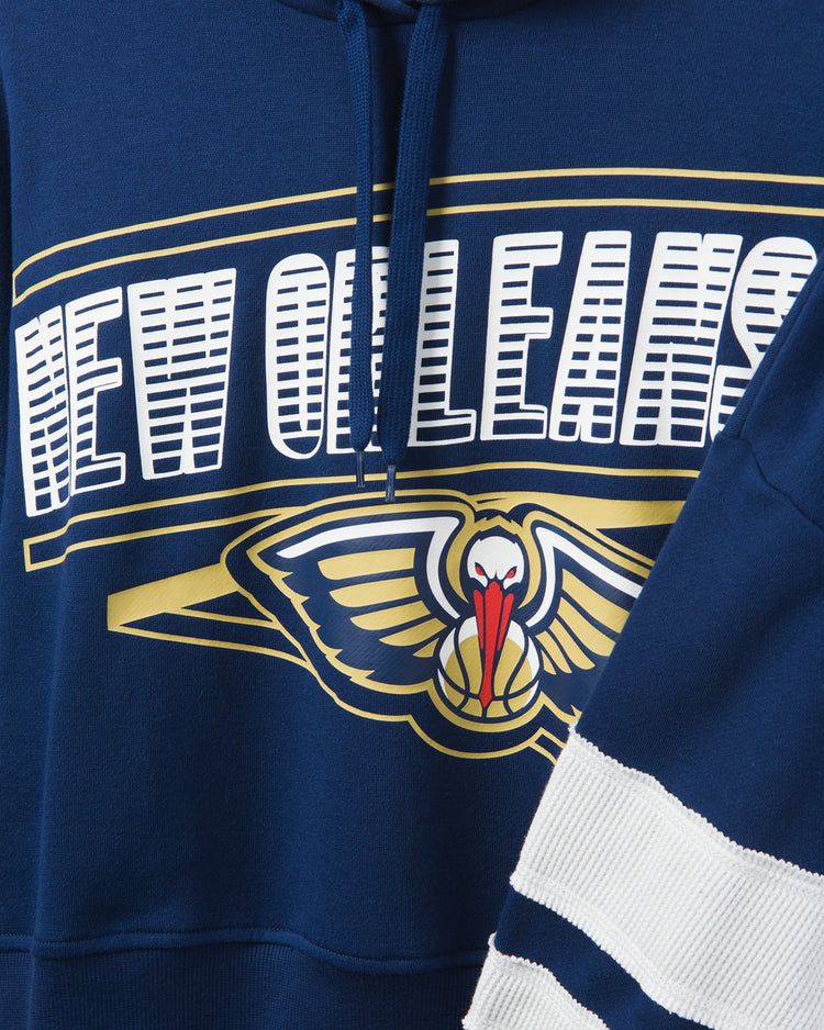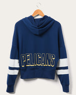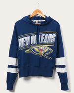 For the game days you're looking to feel stylish, but ultimately cozy. Our Womens' Pelicans Overtime Striped Fleece Hoodie in True Navy has got you covered for an easy throw-on piece for home, bar or arena. Made in our super soft blended French Terry & sporting a boxy, cropped fit for a modern update to your hoodie collection.