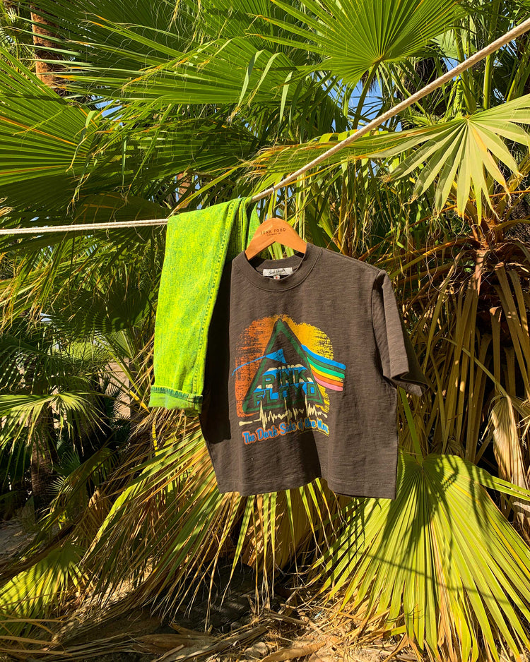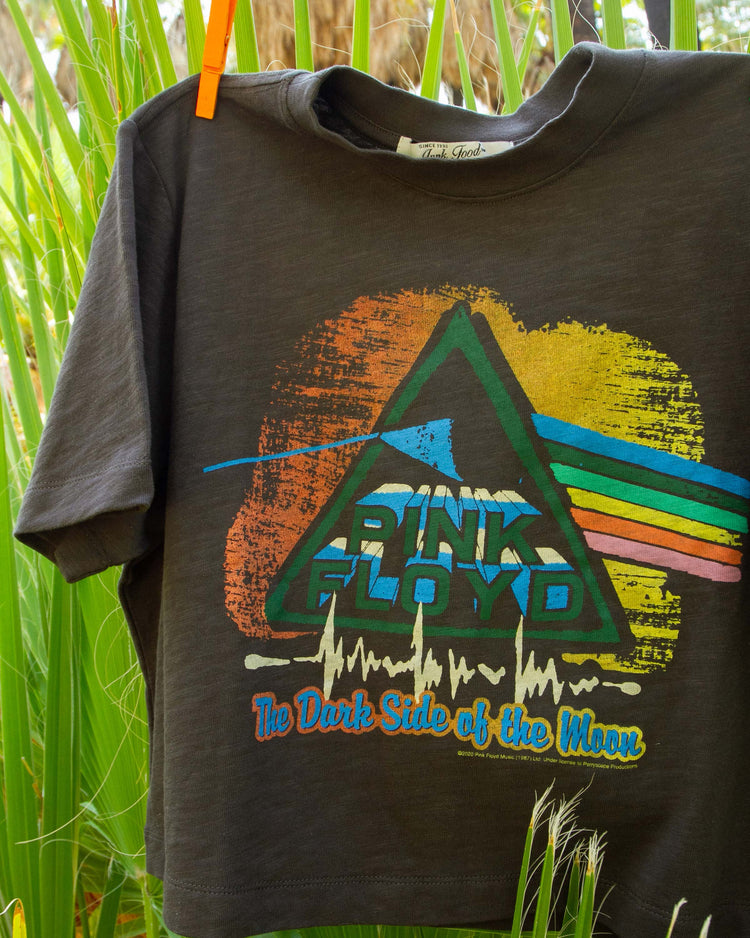 Crank up the color in our Pink Floyd Brush Stroke Crop Tee. We took the most iconic album art & added a neon filter. This multi color soft print is featured on our modern crop tee with a mock neckband, made in heavyweight cotton slub & finished with our signature garment dye wash for the perfect worn in feel.
