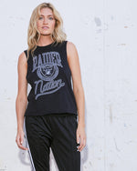 Show your Raiders loyalty at the next game lookin' so cute & feeling relaxed. Our signature super-soft cotton tank features a rib neckband, slight dropped armhole & oversized team graphic for a laid back style. Pair it with all your favorite bottoms while the season's still warm & fun, then layer it up under your favorite jacket when the fall & winter months roll in.