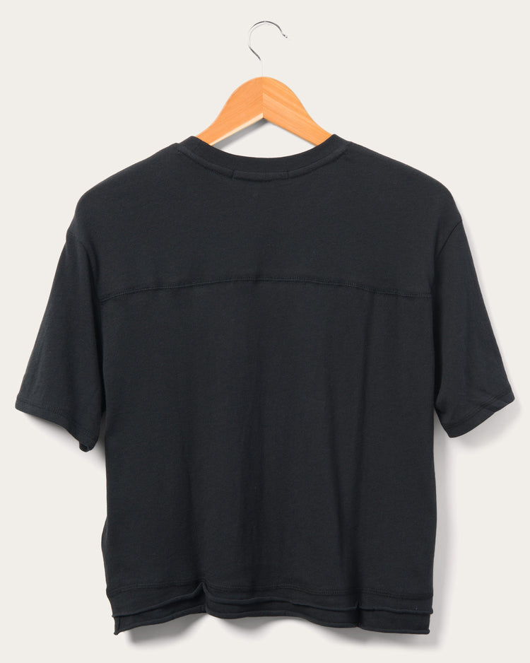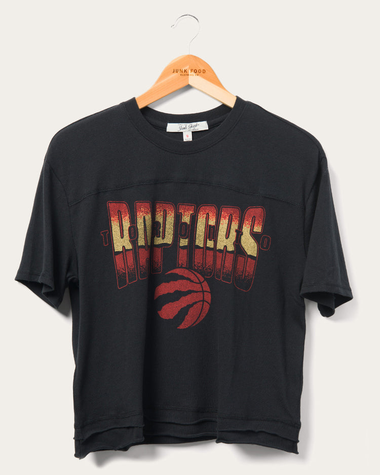 Ladies, we've got you covered for simple, yet cute throw-on tee for game-day! Our Women's Raptors Courtside Crop Tee in True Black sports an easy, boxy, cropped fit with raw cut hem & stitching details, and features a vintage inspired team logo. The perfect tee to match all bottoms & keep you feeling trendy while backing your team.