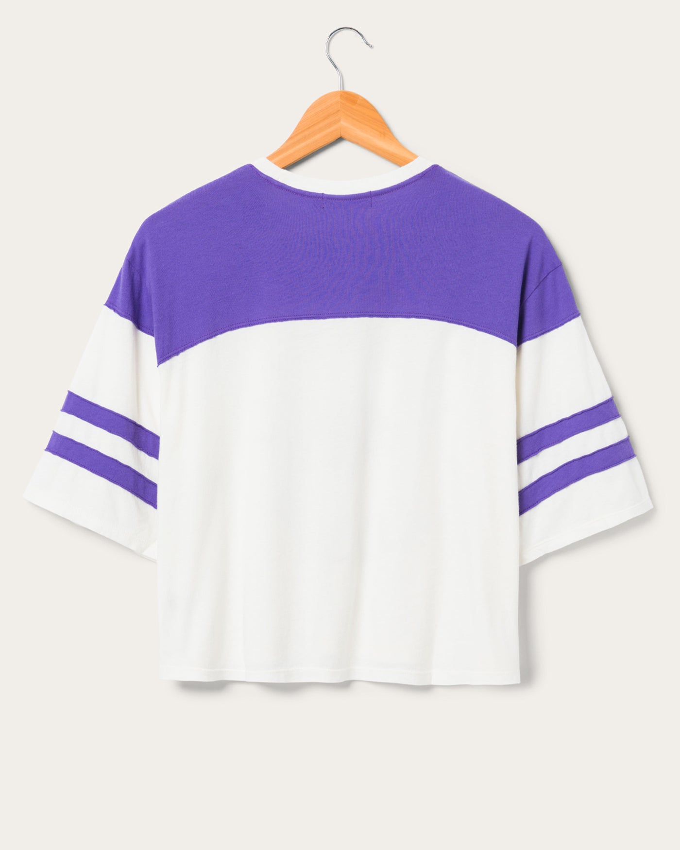 Let us set the scene… you need a new shirt to support your fave team, but you actually want it to look good. Here is the Women’s Ravens Hail Mary Tee to come to your rescue. This multi-colored tee featuring a faded Baltimore Ravens graphic on the front is here to become a staple piece of your wardrobe rotation. Support your squad and look good doing it, get yours now!