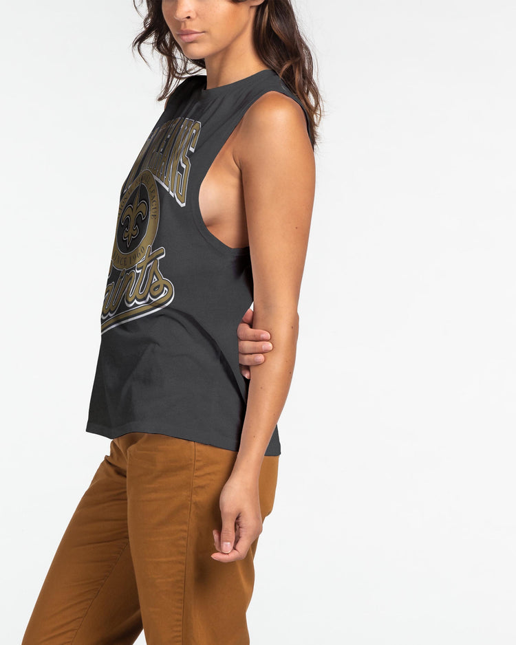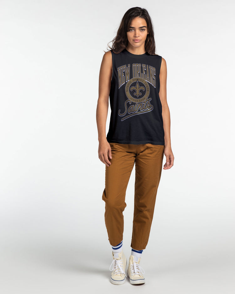 Show your Saints loyalty at the next game lookin' so cute & feeling relaxed. Our signature super-soft cotton tank features a rib neckband, slight dropped armhole & oversized team graphic for a laid back style. Pair it with all your favorite bottoms while the season's still warm & fun, then layer it up under your favorite jacket when the fall & winter months roll in.