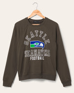 Elevate your game day look with our officially licensed Women's Seahawks Flocked Raglan Crew Fleece! This cozy fleece, an officially licensed product, features a stylish raglan sleeve design and soft flocked Seahawks graphics. Perfect for cooler weather, it's a comfortable and fashionable way to show your team spirit.