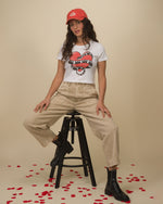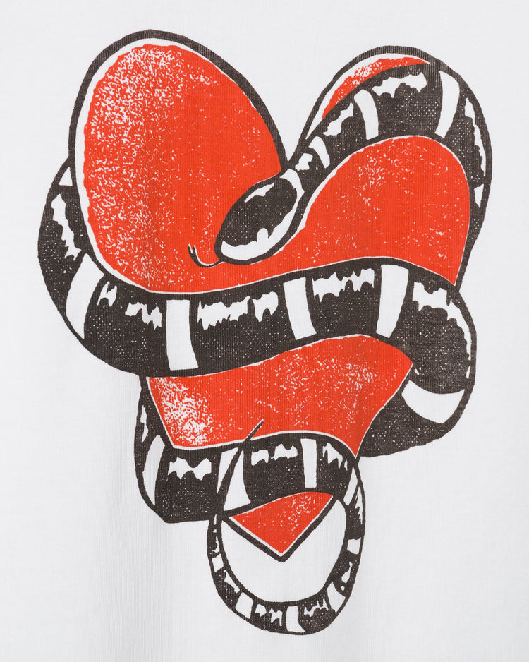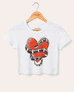 This Junk Food Women's Snake Heart Baby Tee combines edgy charm and retro vibes. Featuring a bold red heart entwined by a black-and-white snake, this cropped design is perfect for casual looks with attitude. Made for comfort and style, it’s a wardrobe staple for standout statement wear.