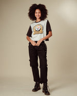 Show off your Steelers pride with this officially licensed Women's Color Block Crop Tee! Perfect for game day or casual wear, it features bold team colors and a trendy cropped fit. Made for comfort and style, this tee is a must-have for any true Steelers fan.