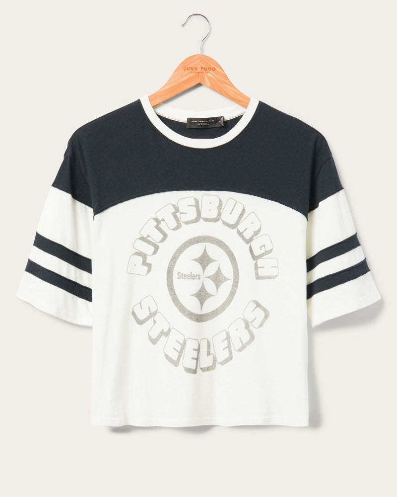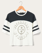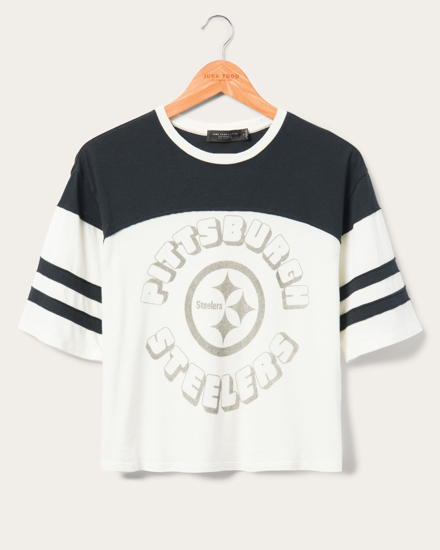 Let us set the scene… you need a new shirt to support your fave team, but you actually want it to look good. Here is the Women’s Steelers Hail Mary Tee to come to your rescue. This multi-colored tee featuring a faded Pittsburgh Steelers graphic on the front is here to become a staple piece of your wardrobe rotation. Support your squad and look good doing it, get yours now!