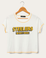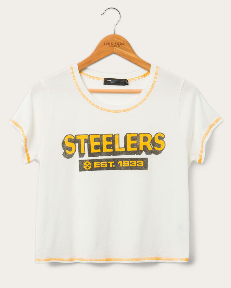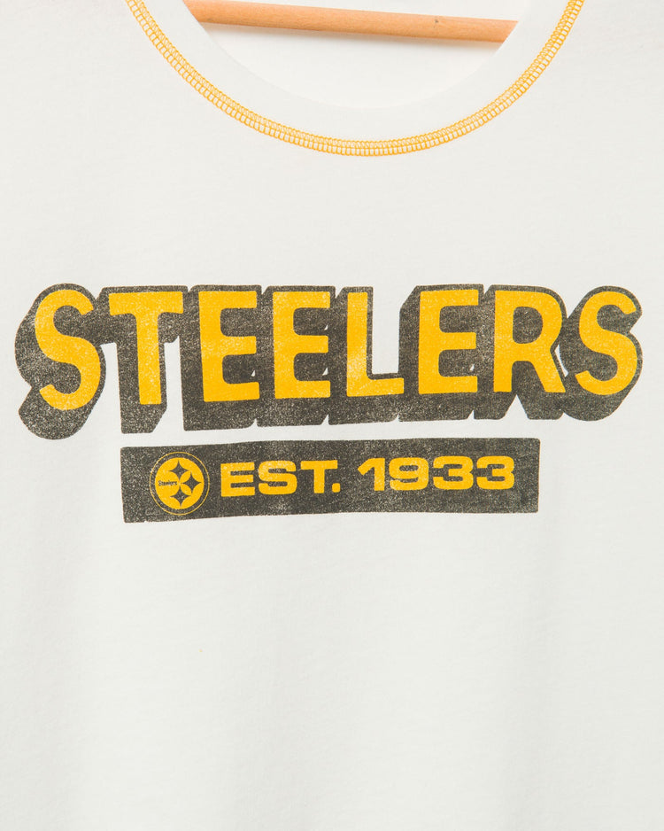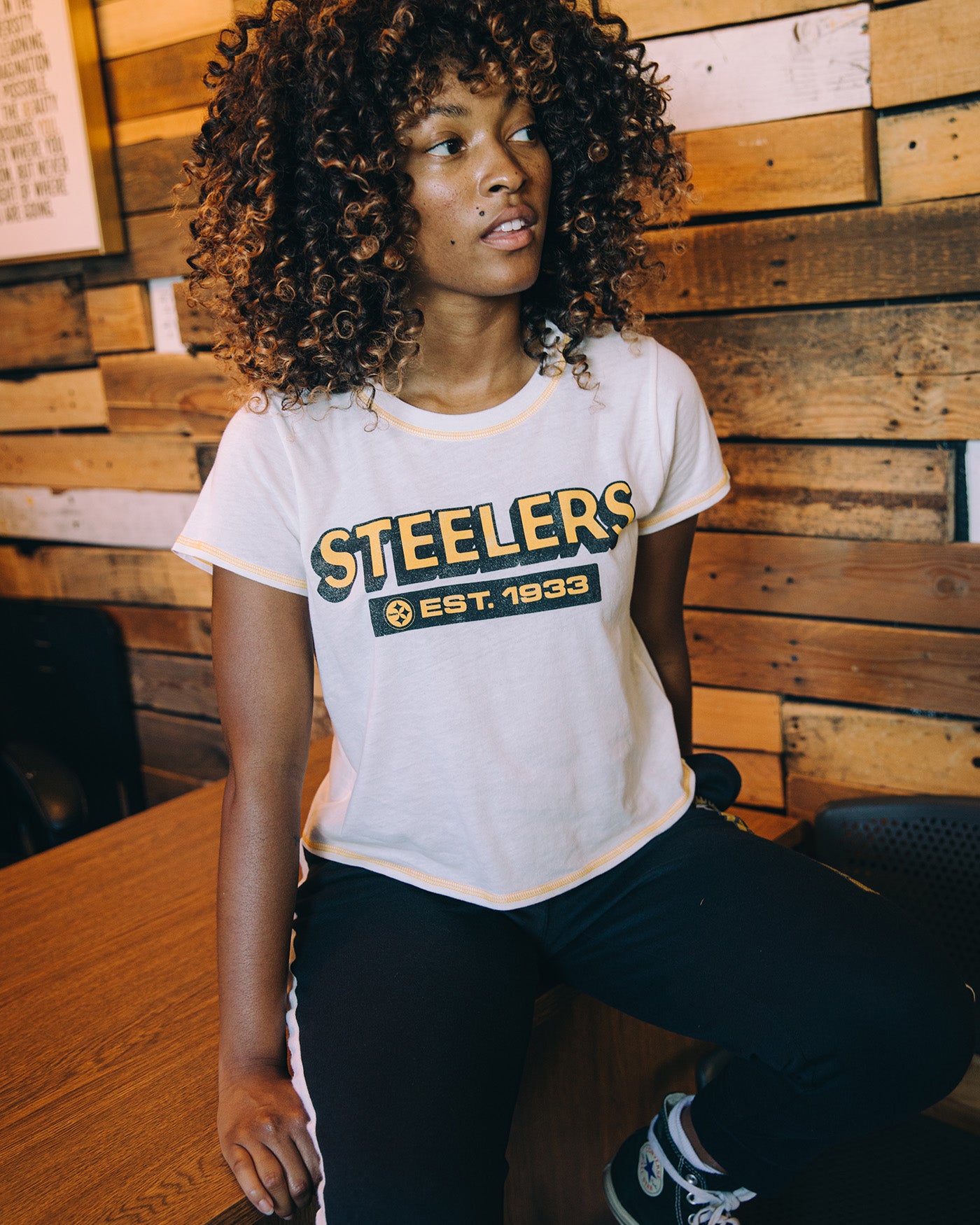 Big time players make big time plays and you can too in our Women’s Steelers Playmaker Tee! Featuring an almost 3D looking graphic on the front and color details along the neck, sleeve, and hem this shirt is perfect for any game day. Go Steelers!