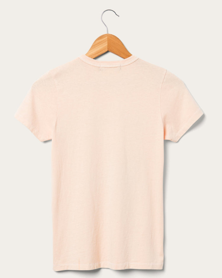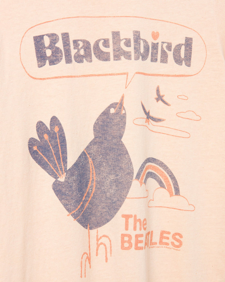 Our Women's The Beatles Blackbird Original Tee is a throwback to 1968! This super soft tee features a slim silhouette that is perfectly body-hugging to tuck into your favorite retro high-waisted jeans. The distressed grinding on the neckline and sleeves give it that ’60s vibe and it comes in our beautiful Spanish Villa colorway. This tee could (and probably should) become the next staple piece of your wardrobe.