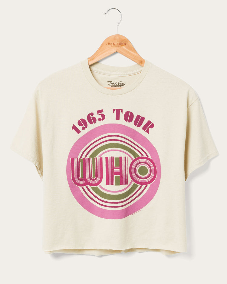 Rock your vintage vibes with this Women's The Who 1965 Tour Flea Market Crop Tee. Featuring classic The Who graphics, it's a throwback to the iconic era of rebellious spirit. Perfect for flea market finds or casual days out, this tee is your ticket to timeless rock 'n' roll style.