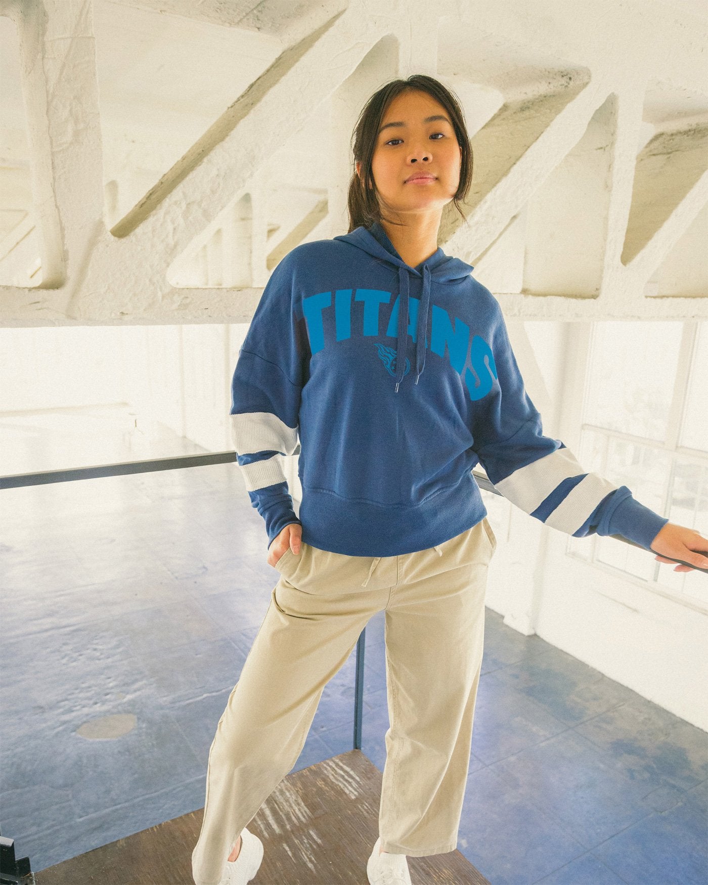 For the game days you're looking to feel stylish, but ultimately cozy. Our Sideline Strip Hoodie's got you covered for an easy throw-on piece for home, bar or stadium. Made in our super soft blended French Terry & sporting a boxy, cropped fit for a modern update to your hoodie collection.
