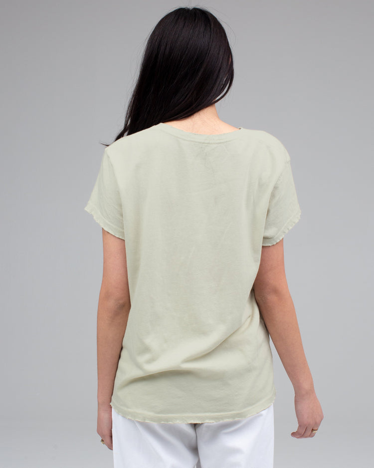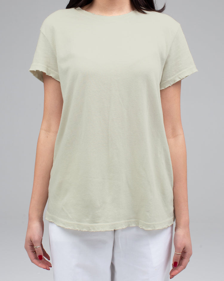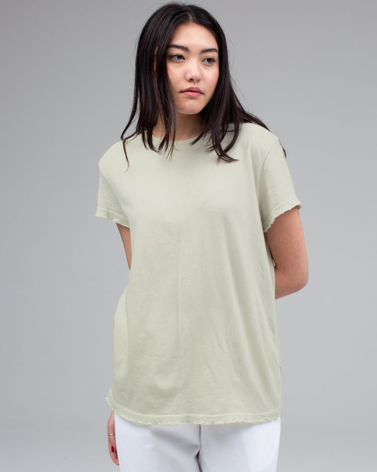 Made in our signature loose-knit 100% cotton jersey, finished with garment dye and washed for a true vintage-worn feel. Featuring a classic crew neck with ladder stitching details & intentionally distressed at neck sleeve & hem.