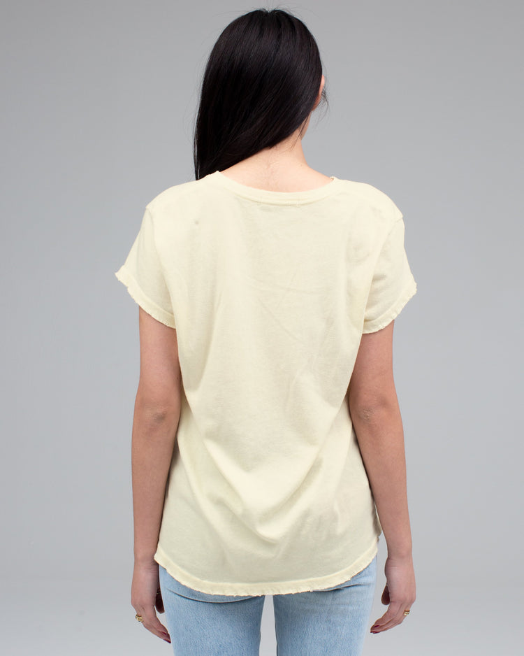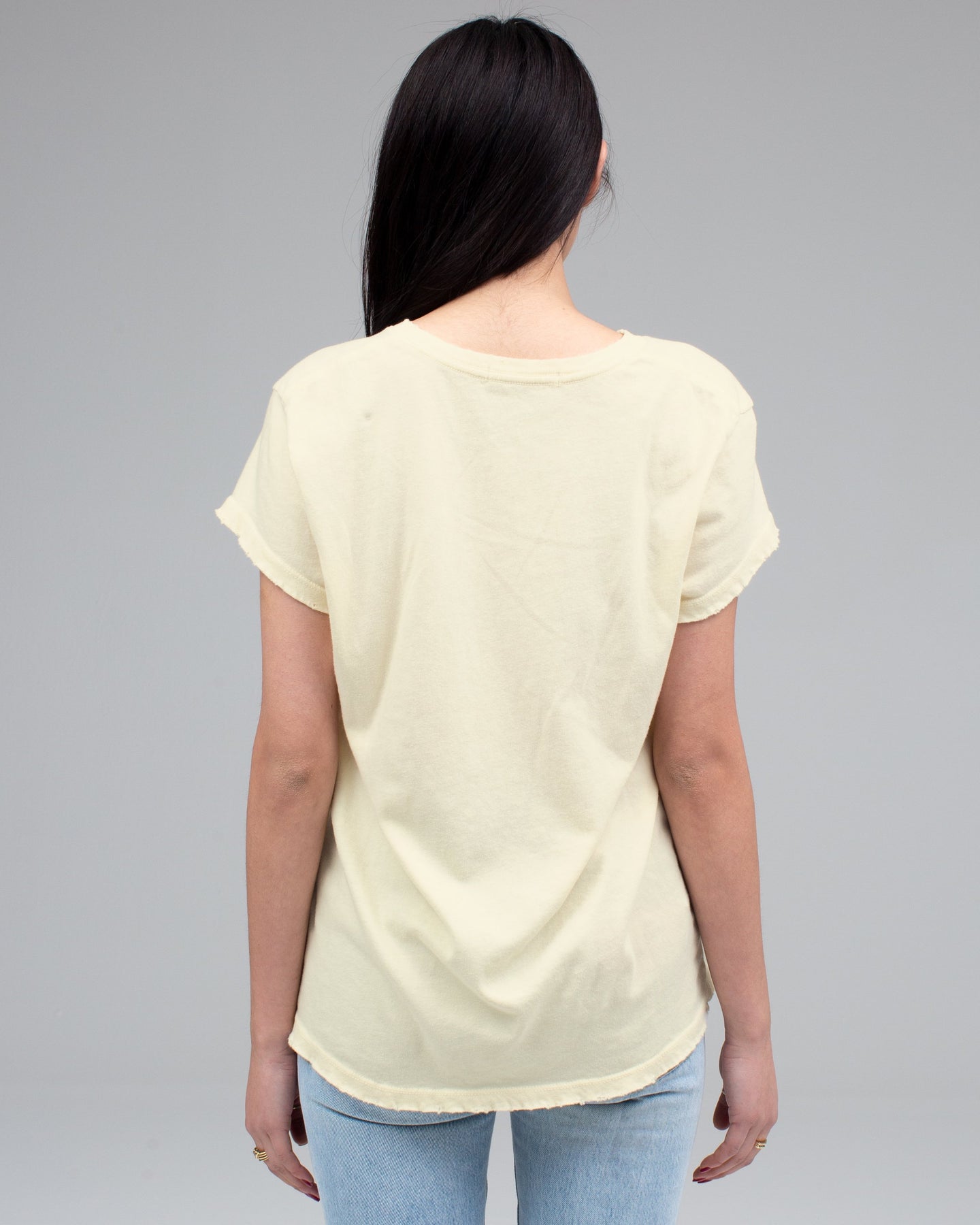 Made in our signature loose-knit 100% cotton jersey, finished with garment dye and washed for a true vintage-worn feel. Featuring a classic crew neck with ladder stitching details & intentionally distressed at neck sleeve & hem.