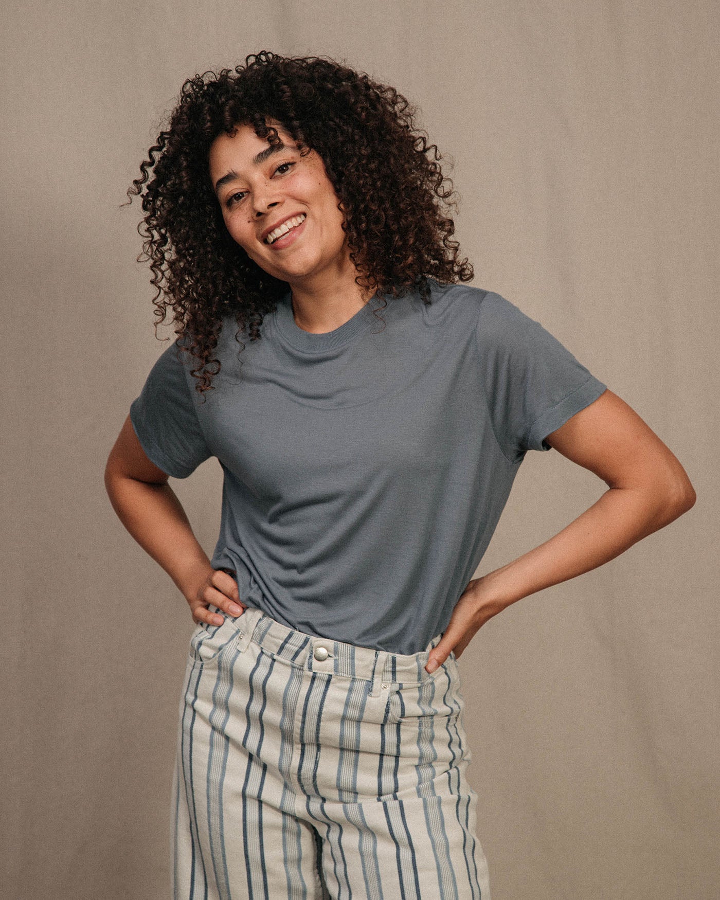 Our re-creation of the most authentic vintage tee that's so worn from time, you'll forget you even have anything on! Our Vintage Tissue Tee is made in our signature, buttery-soft 100% micro modal jersey, right here in LA. Featuring a relaxed fit with classic crew neck & ladder stitching details.
