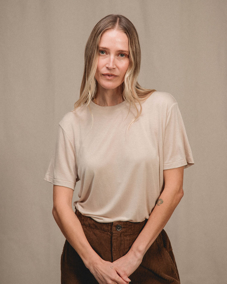 Our re-creation of the most authentic vintage tee that's so worn from time, you'll forget you even have anything on! Our Vintage Tissue Tee is made in our signature, buttery-soft 100% micro modal jersey, right here in LA. Featuring a relaxed fit with classic crew neck & ladder stitching details.