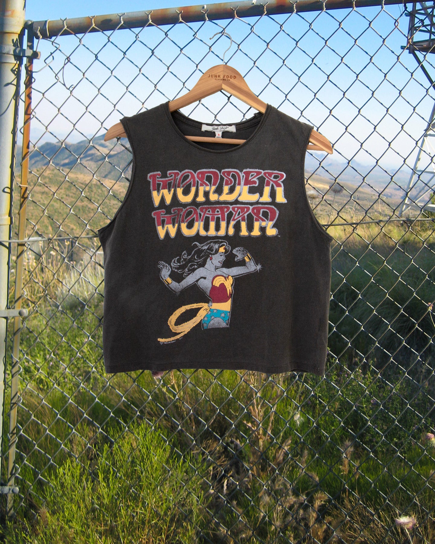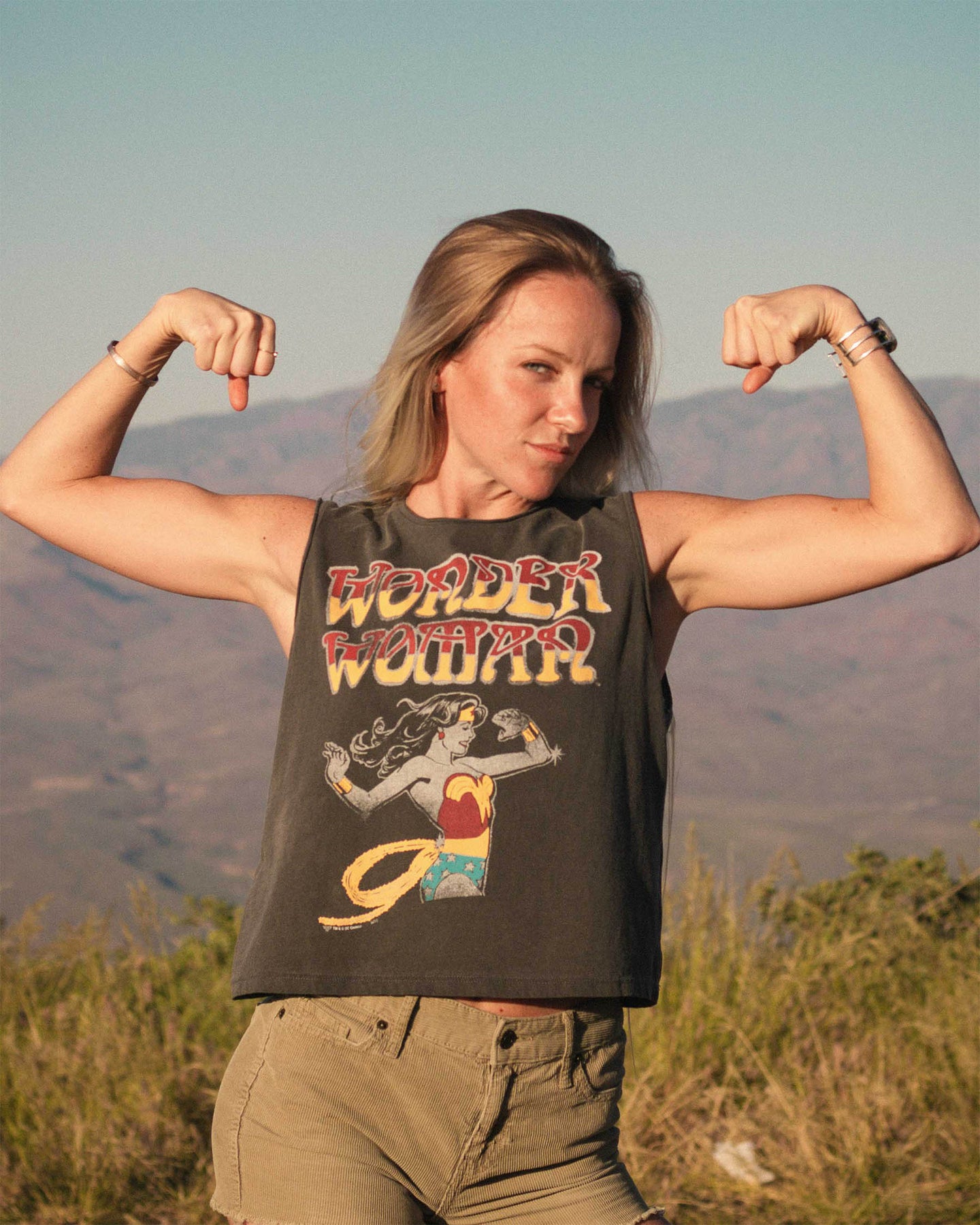 Show off your inner DC WONDER WOMAN™! Featuring a soft pigment dye and our crackle wash, this 100% cotton muscle tank will have you ready to take on the warm weather and maybe the universe too.